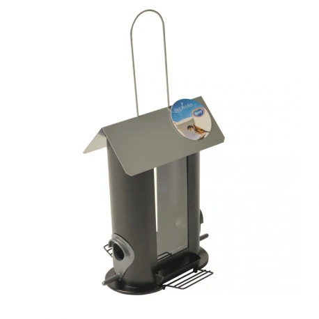 Cette mangeoire silo de Duvo+ offre de la nourriture aux oiseaux durant une longue période. Le métal résistant et durable garantit une durée de vie prolongée. En outre, le silo est facile à remplir. La mangeoire silo se compose de 2 perchoirs et de 2 ouvertures, vous pouvez proposer deux types de graines à vos oiseaux de jardin.